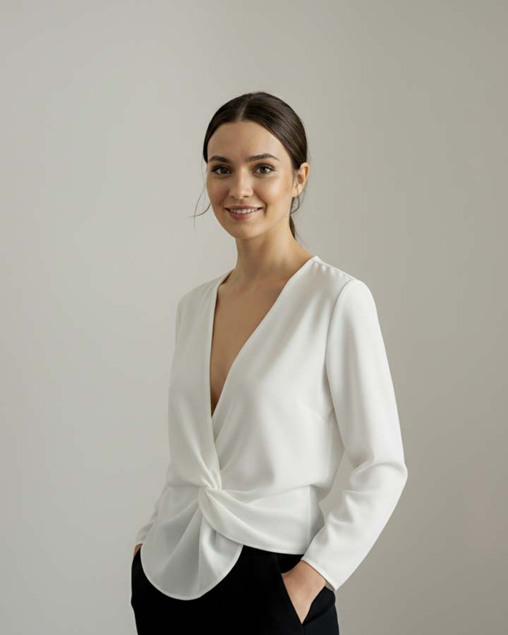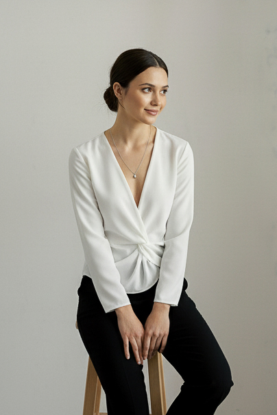 Blusa cruzada de escote profundo blanco