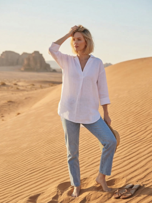 Camiseta blanca I Love Km0 lino & punto Be Blouse