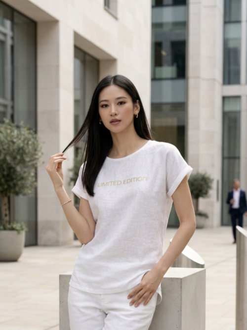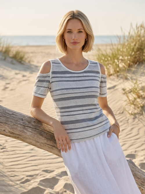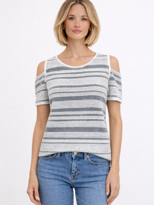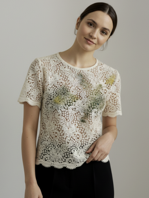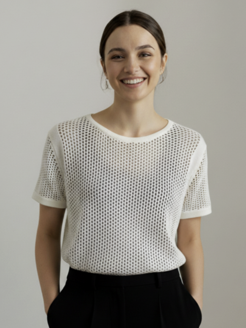 Blusa blanca translúcida de textura geométrica Woman&Now
