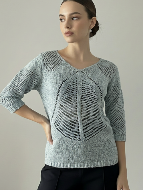 Suéter calado en tono verde agua con escote en V Woman&Now