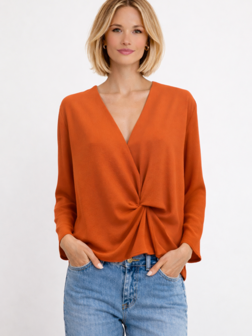 Blusa terracota drapeada con escote en V Woman&Now