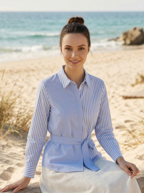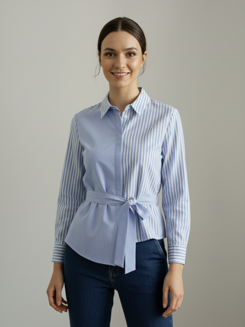 Camisa azul de rayas con cinturón Be Blouse