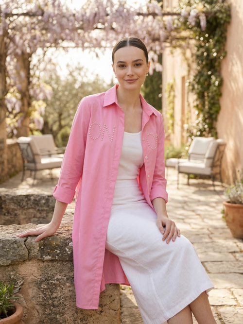Camisola larga rosa neón con pedrería Be Blouse