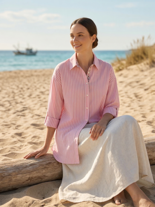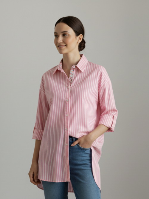Camisa larga de rayas rosa Be Blouse