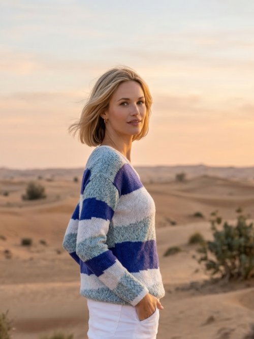 Suéter de rayas en tonos azules textura suave Woman&Now