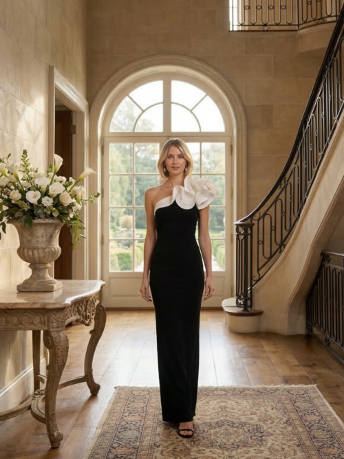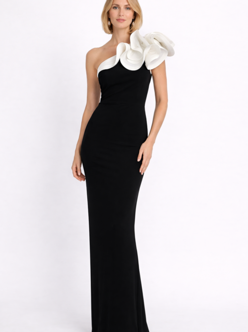 Vestido Black One Shoulder Ruffle Elegance