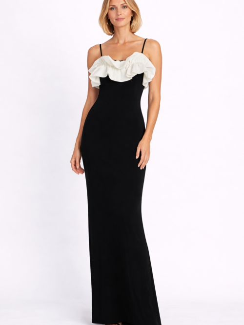 Vestido Black & White Ruffle Straps Elegance