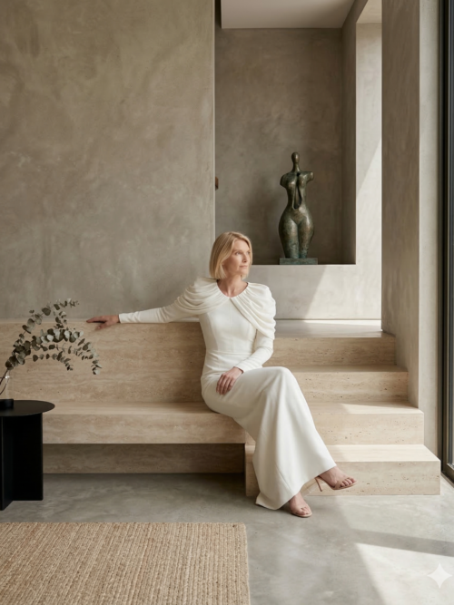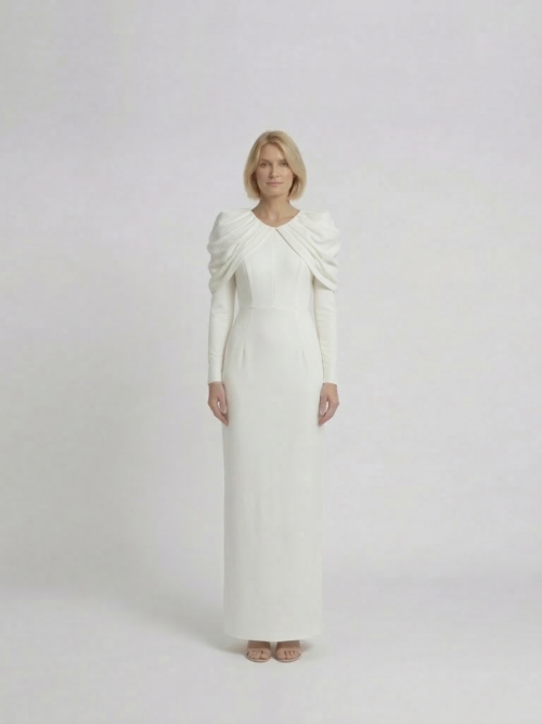 Vestido White Draped Shoulders Elegance