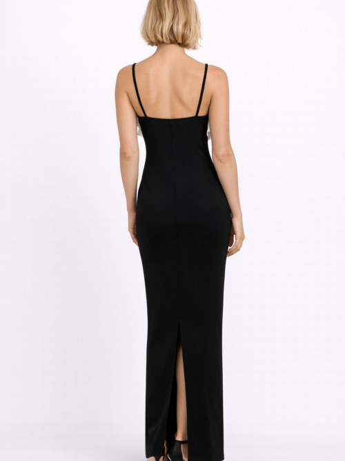 Vestido Black & White Ruffle Straps Elegance
