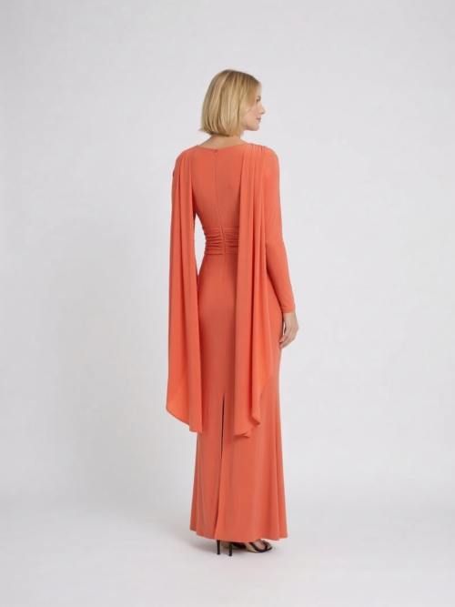 Vestido Melon Draped Cape Elegance
