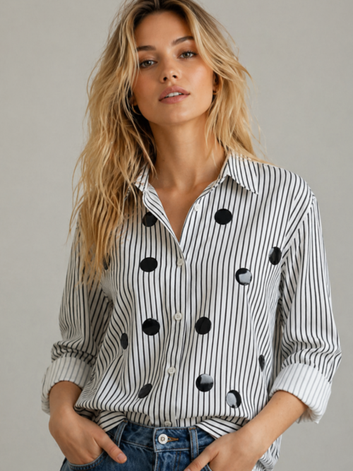 Destaca con nuestra camisa de rayas azules Be Blouse, una prenda que combina popelín con mangas de encaje para un look femenino y especial. Con cuello camisero, botones frontales y contraste de texturas, aporta un estilo elegante y actual. Su tejido ligero y cómodo la hace ideal para crear looks favorecedores, versátiles y con un toque delicado.