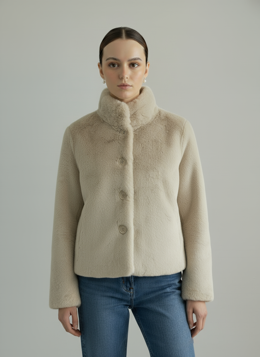 Luce elegancia y comodidad con la chaqueta Faux Fur Soft, confeccionada en pelo de fibra larga con base textil interior. Su material ofrece volumen ligero, buena retención térmica y resistencia al uso, asegurando confort y durabilidad en cualquier ocasión. Ideal para combinar con jerséis, blusas o camisetas, aportando un toque sofisticado y moderno a tus looks de invierno o entretiempo.