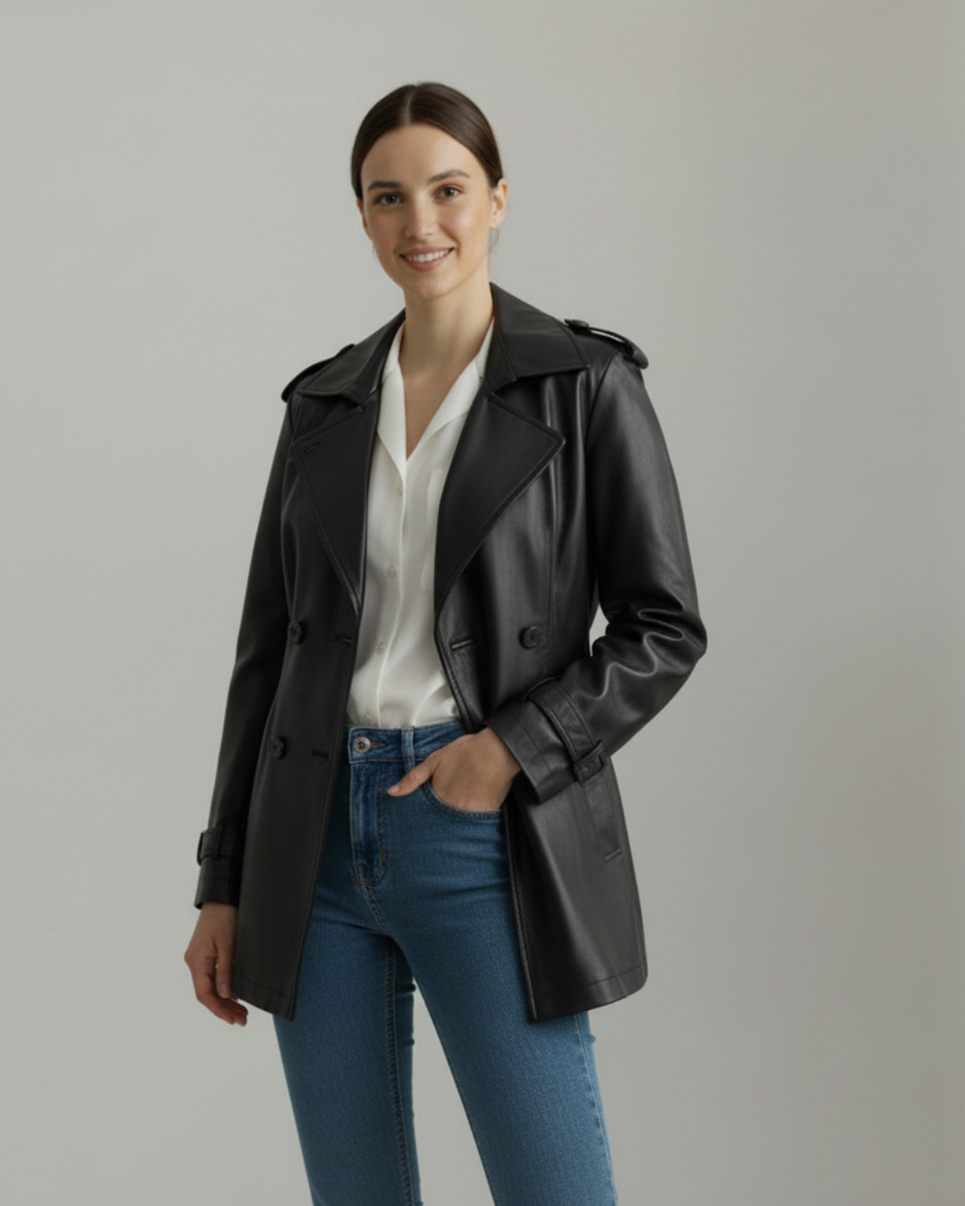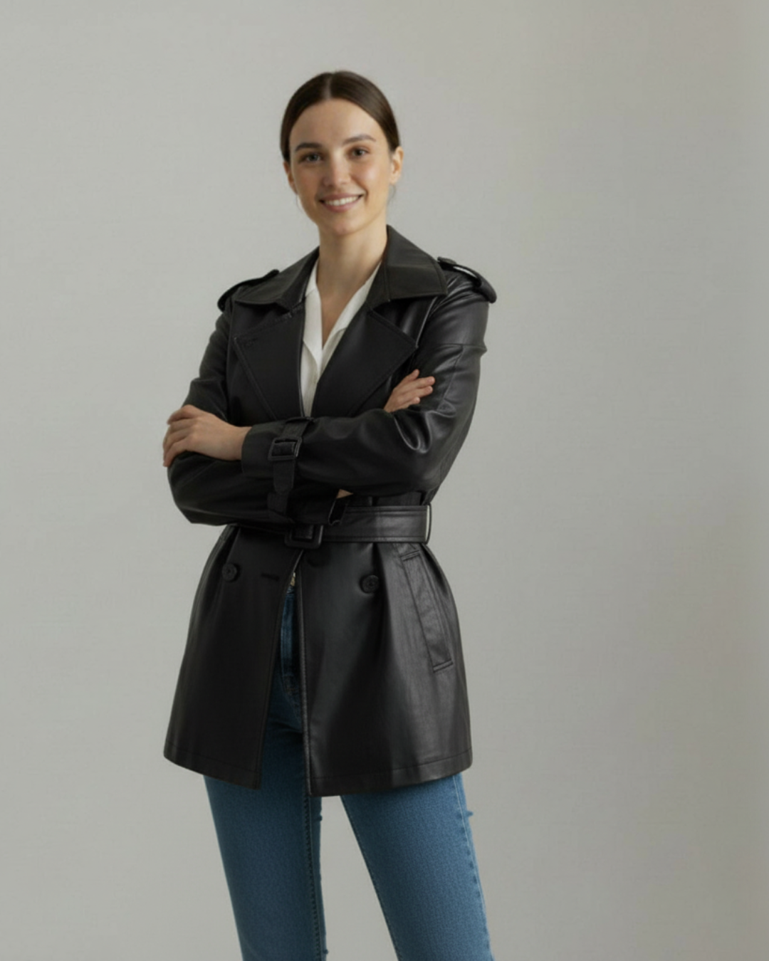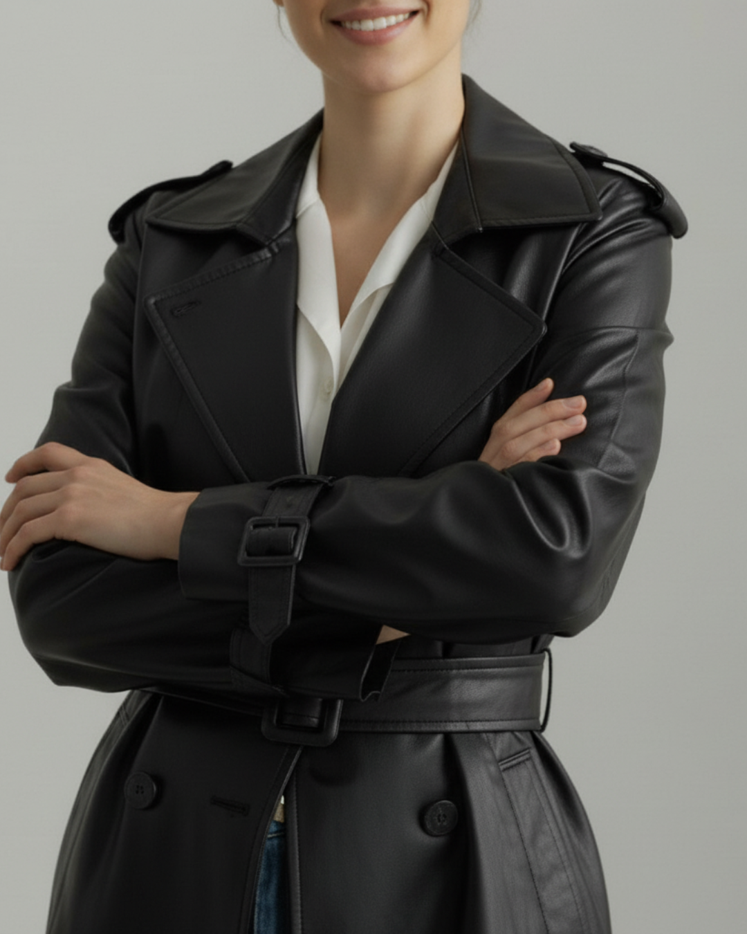 Luce un estilo elegante y moderno con nuestro trench Leather Belt, confeccionado en ecopiel de alta densidad con base interior textil que aporta comodidad y durabilidad. Incluye cinturón ajustable para estilizar la silueta y hebillas en las mangas, reforzando la estructura del diseño y añadiendo un detalle sofisticado. Perfecto para completar looks urbanos, formales o de entretiempo con carácter y estilo.